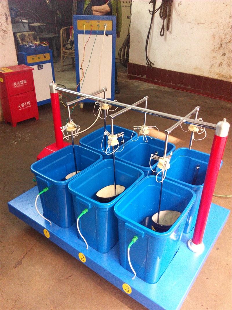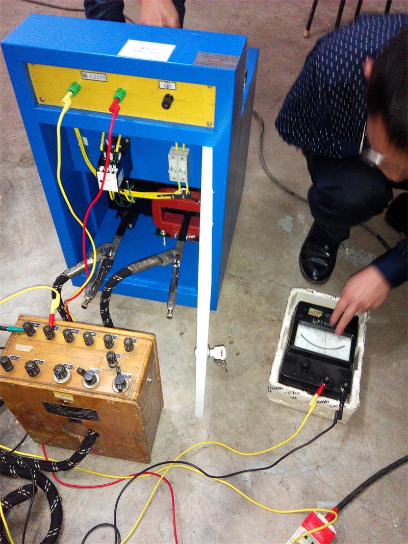 3.20號,公司技術人員就從武漢出發,21日中午就到達該公司。下午到電力公司實驗檢測中心做培訓。首先做絕緣靴耐壓,注水實驗正常,但他們所用絕緣靴明確規定嚴禁注水實驗,只能干式耐壓,因此要求我們配鋼珠;再用升流器校準電流互感器做演示實驗;最后用變比測試儀測試電壓互感器變比。