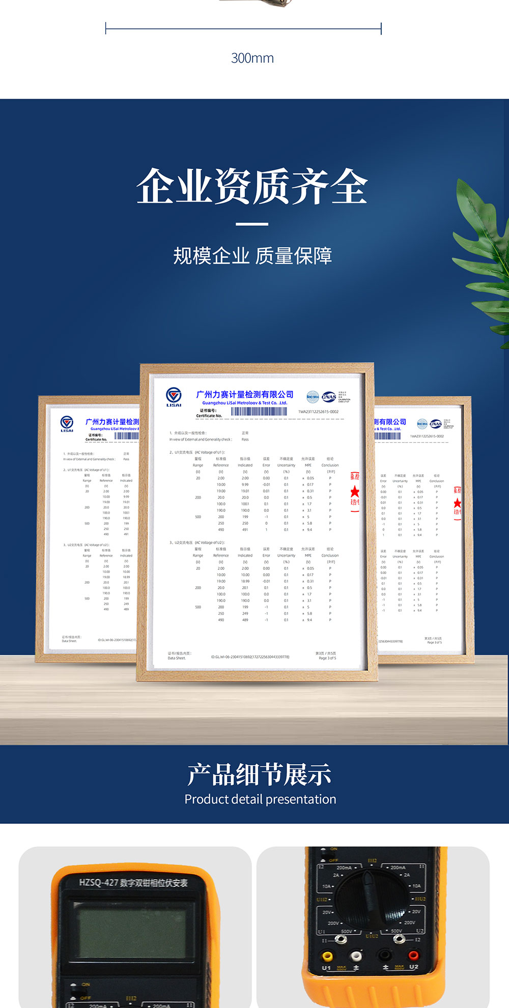 測(cè)U1-I2或I1-U2相位時(shí):10V~500V、10mA~10.00A |
