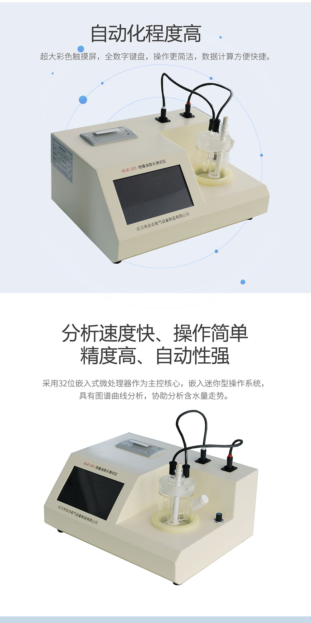 絕緣油微水測(cè)試儀,采用卡爾—費(fèi)休庫(kù)倫滴定法,對(duì)不同物質(zhì)進(jìn)行微量水分的測(cè)定,是極可靠的方法。微量水分測(cè)定儀成功的應(yīng)用了這一方法,采用了先進(jìn)的自動(dòng)控制電路,32位嵌入式微處理器作為主控核心,嵌入迷你型操作系統(tǒng)。從而使該儀器工作更可靠,使用更方便。其分析速度快、操作簡(jiǎn)單、精度高、自動(dòng)性強(qiáng)等特點(diǎn)。廣泛應(yīng)用于石油、化工、電力、鐵路、農(nóng)藥、醫(yī)藥、環(huán)保等部門(mén)。